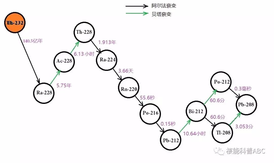 这三个放射系中的核素,主要是通过阿尔法衰变、贝塔衰变和伽马衰变的。经过一系列的衰变后,直到形成稳定核素为止。