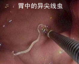 人由于食用生的或未煮熟的含有异尖线虫III期幼虫的海鱼或海产软体动物而感染异尖线虫病。