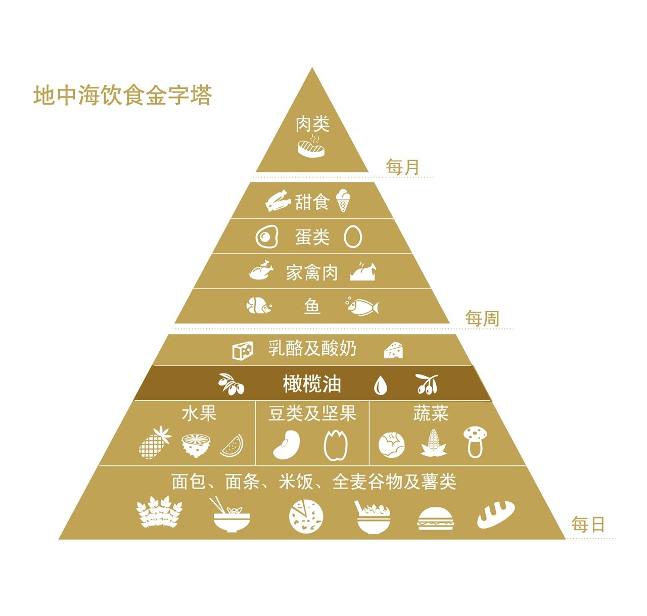3、控制每月食用畜肉(猪、牛和羊肉及其产品)的次数,主要的食用油是橄榄油;