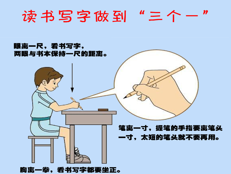 走路时,吃饭时,卧床时,晃动车厢内,光线暗弱或阳光直射不看书、写字、使用电子产品。