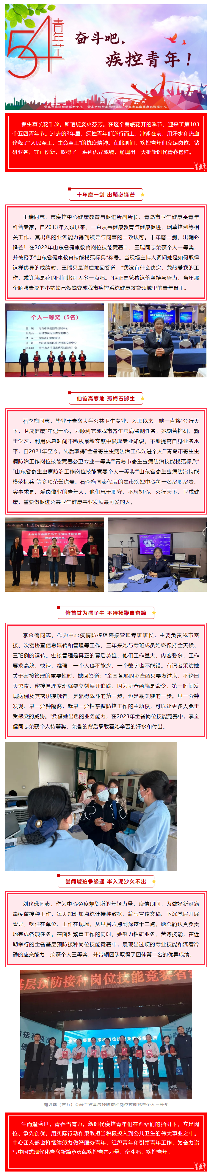 ,疾控青年们立足岗位、钻研业务、守正创新,取得了一系列优异成绩,涌现出一大批新时代青春榜样。