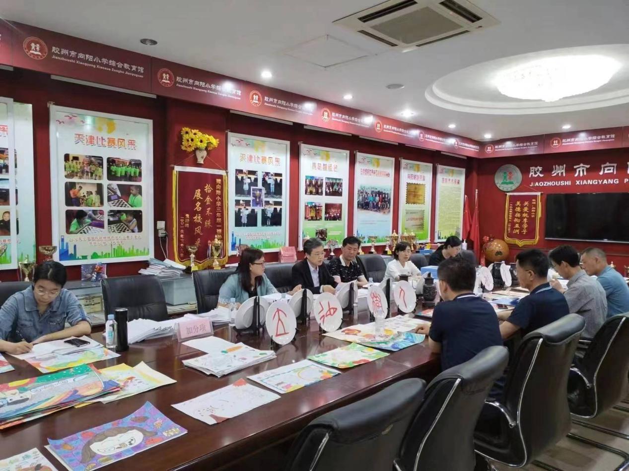 调研组一行实地查看了胶州市向阳小学健康支持性环境及学生在“5.20中国学生营养日”“6.6全国爱眼日”等活动期间的绘画、海报等作品,和学校校长、健康教育副校长、食品安全及膳食营养负责人、学校心理安全等老师们进行了座谈,了解了学校的办学理念以及创建省级健康学校的优势条件,肯定了学校在健康教育、学校健康体检调研、应急救护培训、心理安全等方面开展的工作。指导学校后续对体检结果进行分析,进行学生常见病的卫生学统计和评价,制定群体性干预措施及个体评价,对营养不良的孩子及早进行营养健康干预。