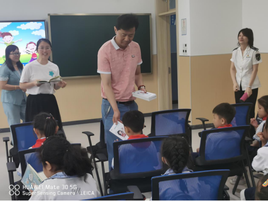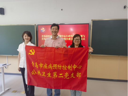 为发挥党建带队建的作用,青岛市疾病预防控制中心公共卫生第二党支部成员与学校党支部成员一起,为一年级新入队队员系上红领巾。为获得荣誉称号的小朋友系上光荣花并颁发荣誉证书。