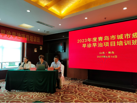 培训班上,龚继勇主任总结了2023年度全省城市癌症早诊早治项目开展情况,充分肯定了我市高危人群社区筛查和临床查体等各项工作,并对2023年度项目工作方案进行了详细解读。市中心医院肿瘤防治基地李晓主任介绍了在临床开展高危人群筛查、提高居民早诊早治意识的实践经验。市北区疾控中心分享了项目小程序及移动工作平台的使用方法和注意事项。城阳区疾控中心介绍了项目组织开展的先进经验。会议还邀请社区进行项目社区高危人群筛查和评估的工作经验分享。