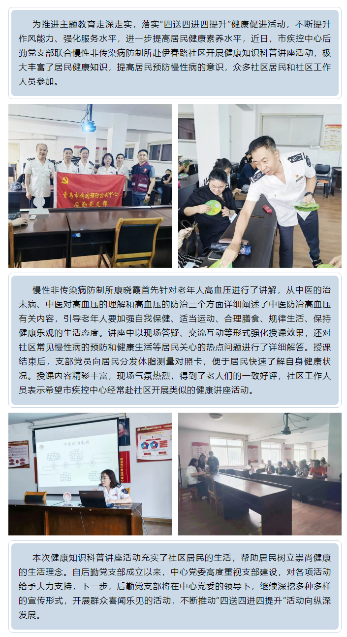 【主题教育】市疾控中心后勤党支部赴伊春路社区开展健康知识科普讲座活动