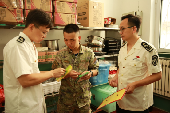 中心消毒与病媒防制所工作人员首先深入部队食堂,实地查看寻找病媒生物入侵和孳生风险点,对食堂餐厅、仓库、后厨加工区的“蚊蝇鼠蟑”病媒生物防制设施开展了调查;对排查到的问题和风险,刘砚涛所长现场提供了处理建议和防制器械。随后,工作人员趣味生动地讲解了病媒生物习性特点以及病媒生物防制要点,指导官兵同志们做好持续的病媒防制工作。最后,工作人员查看了营区食堂的消毒器械和消毒药品,全面详细讲解了消毒剂使用方法,为官兵同志们普及了科学、精准消毒理念。