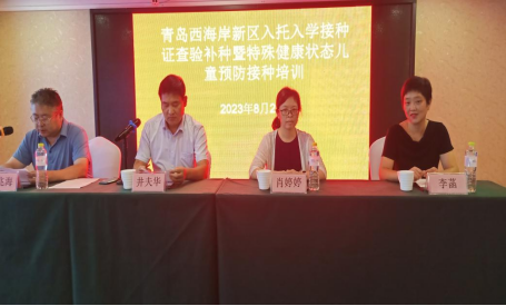 2023年8月21日,西海岸新区卫生健康局、区疾控中心举办全区入托入学接种证查验补种暨特殊健康状态儿童预防接种工作培训班,区卫生健康局、区疾控中心相关领导,各预防接种单位负责人及预防接种工作骨干参加了培训。