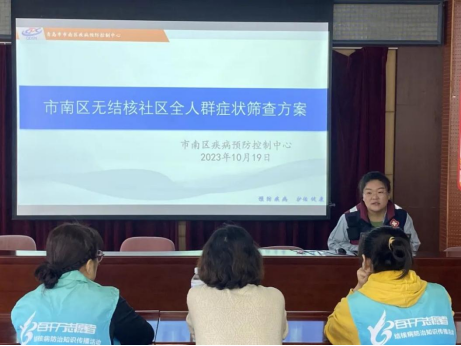 全人群筛查是结核病早发现,早预防,早治疗防控策略的第一步,也是无结核社区创建的关键一步,近日,市南区率先启动湛山街道全人群筛查,并在市南区疾疾控中心召开筛查前培训,湛山街道项目负责人、湛山街道社区卫生服务中心(站)健康促进员、社区网格员及志愿者代表等参加了此次培训。