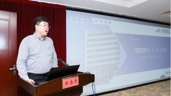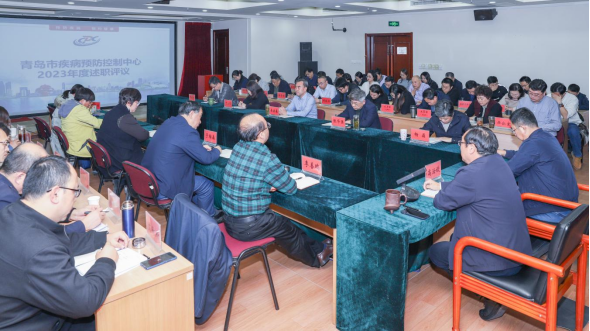1月2日,青岛市疾病预防控制中心组织召开2023年度中层干部述职评议会。会议由中心副主任段海平主持,中心领导班子、中层干部及职工代表共100人参加会议。