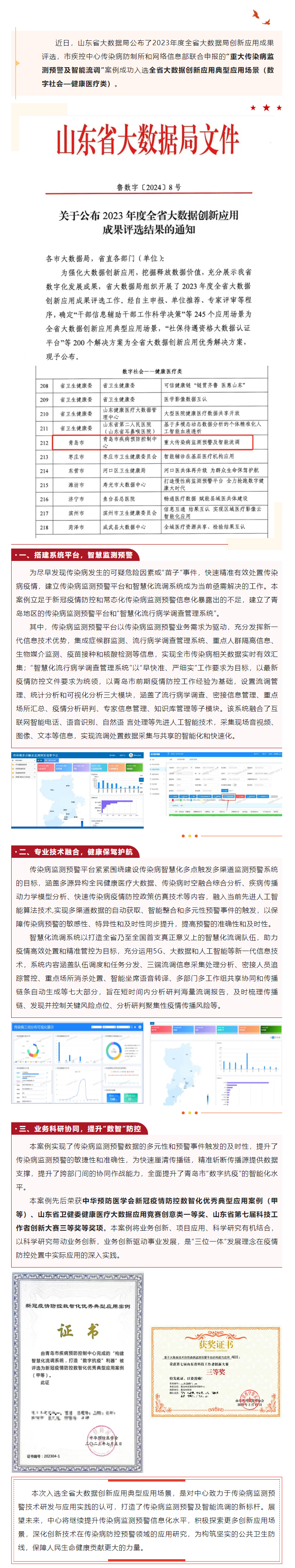 市疾控中心“重大传染病监测预警及智能流调”案例成功入选全省大数据创新应用典型应用场景