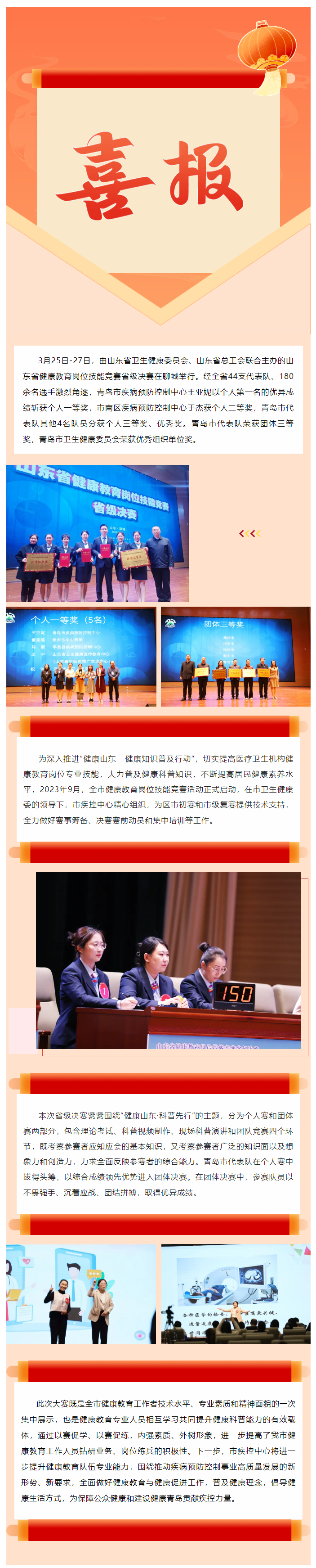喜报!青岛市疾控中心在全省健康教育岗位技能竞赛省级决赛中喜获个人第一名!