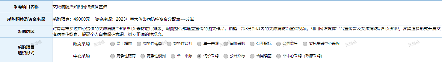 邀请贵公司参加我中心编号为:CGSQ20240401-0005询价采购,请将报价密封于信封中,信封外请务必注明采购项目编号,并以快递或现场送达方式,发至青岛市市南区丰县路8号,联系人:张健稳,电话:18354226886。或以邮件方式将报价表盖章后的扫描件、价格证明文件以PDF或图片格式发至cdcqdaids@qd.shandong.cn。