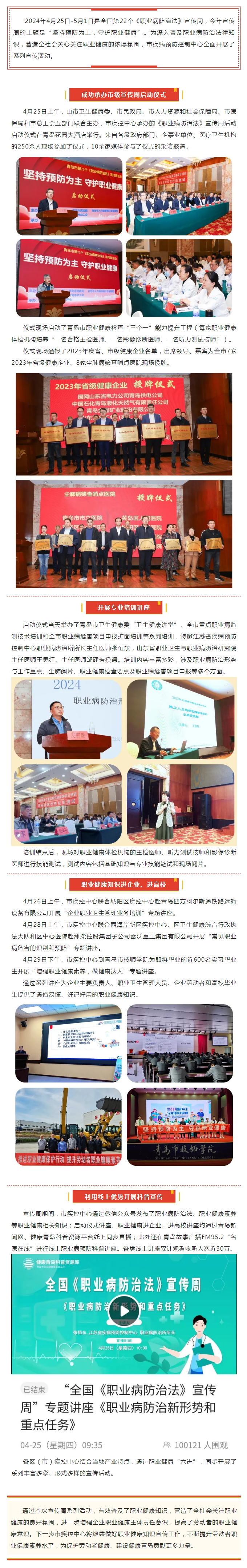 坚持预防为主,守护职业健康|青岛市开展第22个《职业病防治法》宣传周系列活动