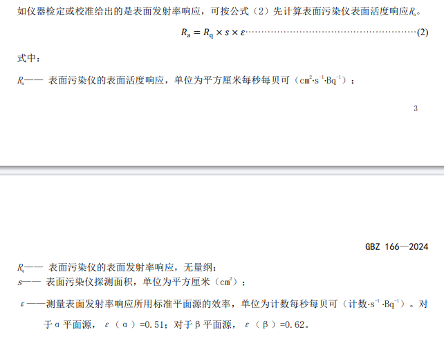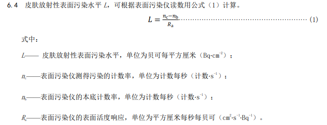 6.1 皮肤及个人防护用品放射性表面污染水平监测的面积可取 100 cm2;对于面积较大或分布不均匀的污染表面,可取多个 100 cm2面积上污染水平的平均值作为监测结果。手部按30 cm2面积平均。