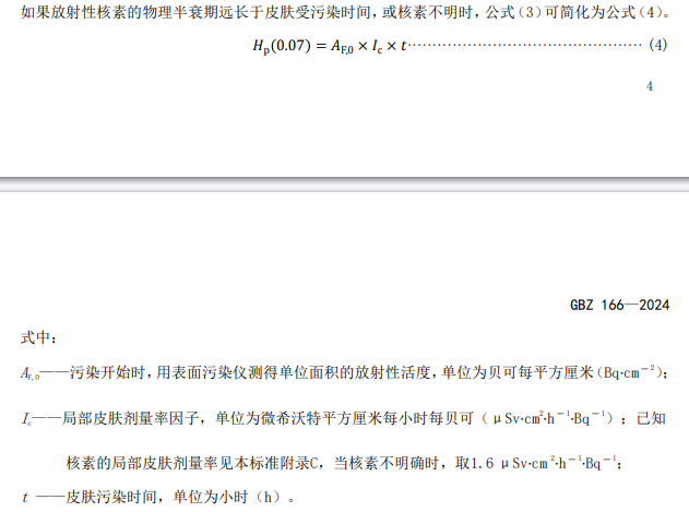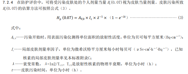 7.2.5 在皮肤受到γ、β核素严重污染的情况下,除评估 Hp(0.07)以外,还需以个人剂量当量Hp(10)评估皮肤受放射性污染处下 10 mm 深处器官或组织的当量剂量,具体按 GBZ 128 的方法。