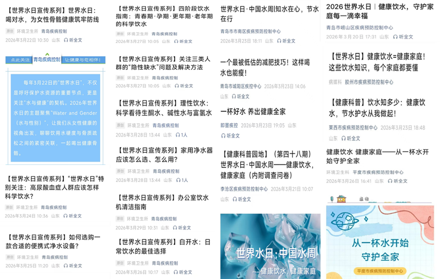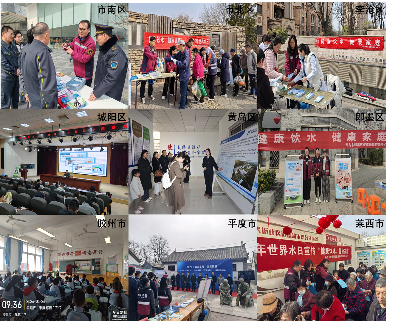 为贯彻落实中国疾病预防控制中心《关于开展2026年“世界水日”宣传活动的通知》(中疾控环办函〔2026〕65号)要求,积极响应联合国“水与性别”主题。3月20日至27日,全市疾控系统以“健康饮水 健康家庭”为核心主题,以“巾帼护水·家家安康——2026年世界水日青岛市在行动”为副主题,开展了形式多样、内容丰富的系列科普宣传活动。